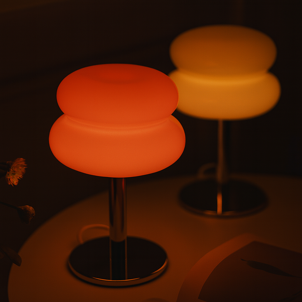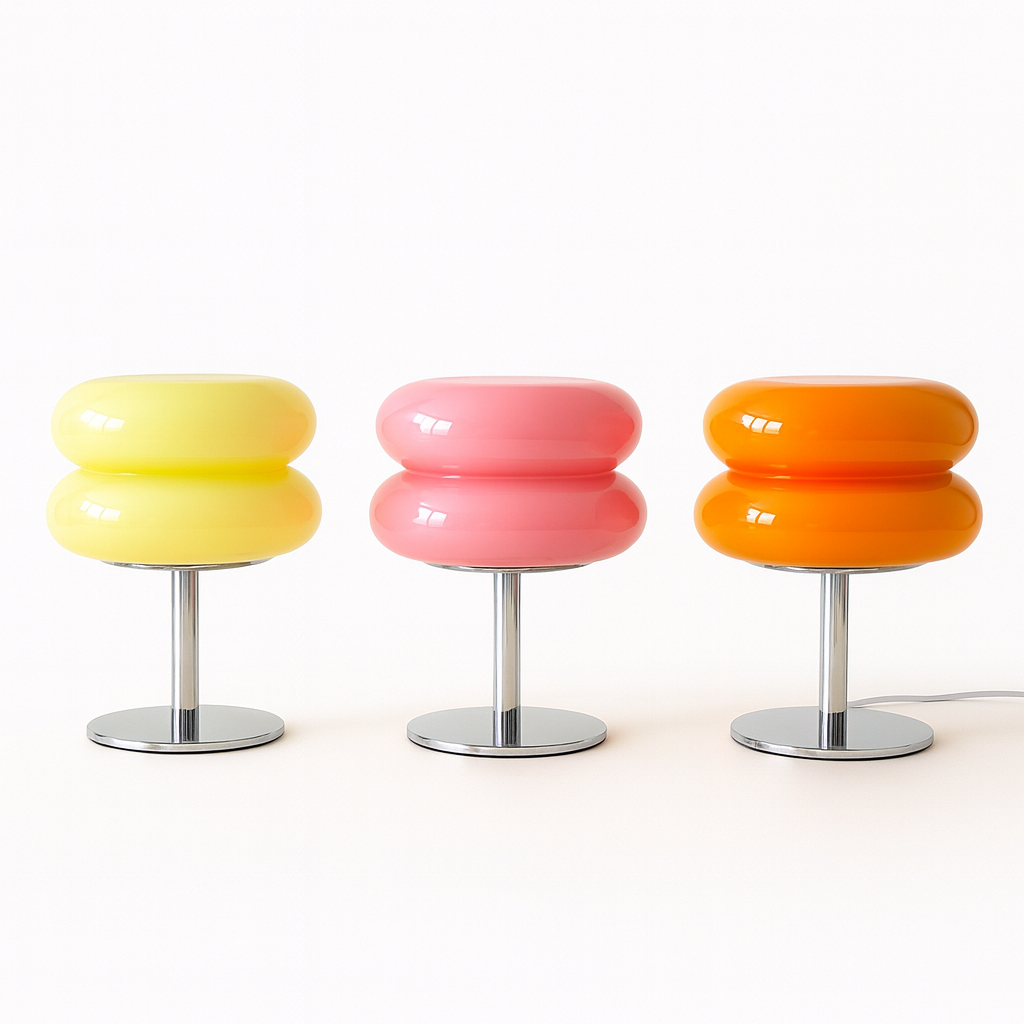 Light up your space with a Illumi Classic, a trio of sculptural glass lamps inspired by mid-century design icons. With glossy “egg tart” domes in rich retro hues and a sleek chrome base, these aren’t just lights—they’re style statements.